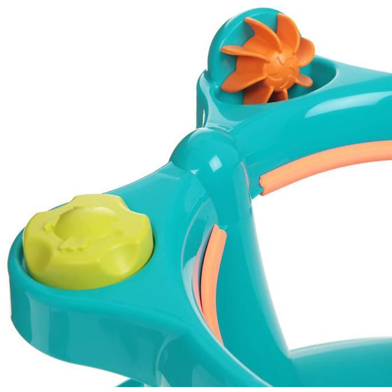- Deux jeux ludiques situés à hauteur idéale des mains de bébé permettront son éveil lors du moment du bain avec maman .