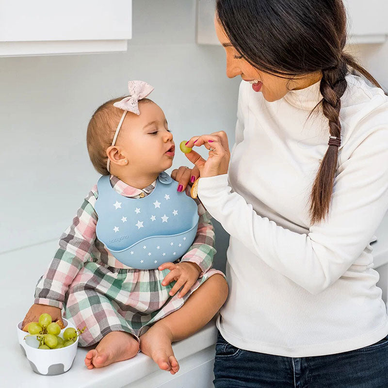 Bavoir récuperateur et ajustable en silicone, bleu : Babyono
