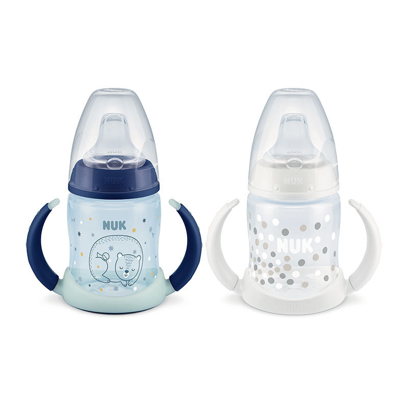Le biberon d’apprentissage NUK First Choice peut être combiné librement avec tous les autres produits de la gamme NUK First Choice.
