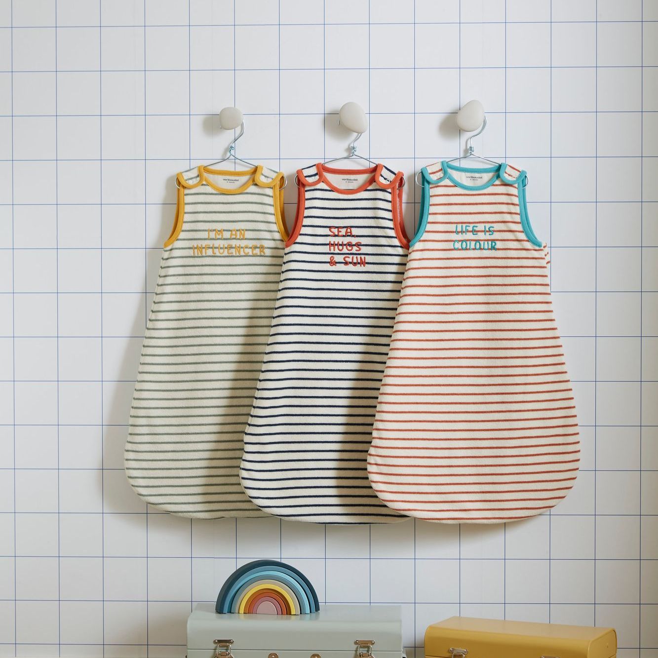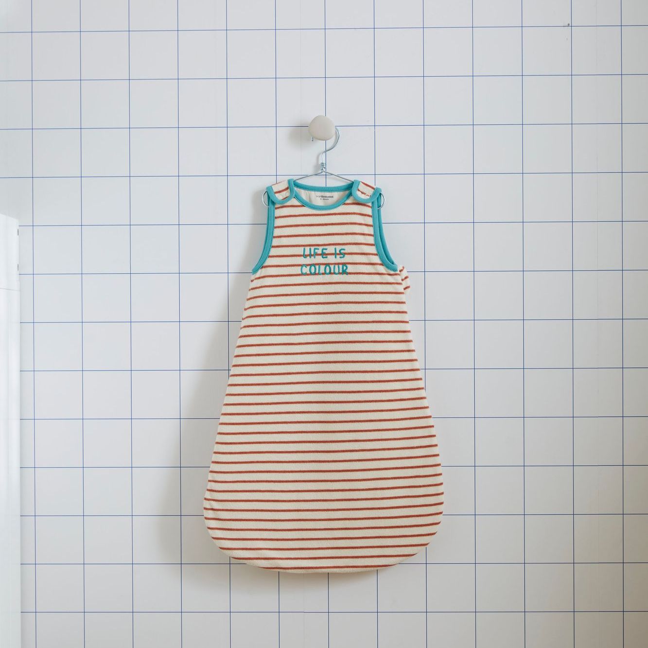 Les beaux jours sont là, on ose la couleur ! Matière éponge et rayure esprit marin, voici tout ce dont on rêve pour les nuits d'été de bébé ! Une gigoteuse légère et tendance avec ses larges bords-côtes contrastés et un petit message brodé pour encore plus de personnalité ! Confectionnée sans ouatinage, elle couvre bébé tout en douceur lorsque les nuits sont chaudes.