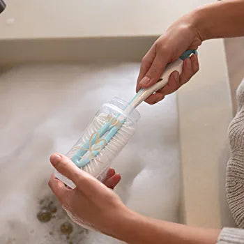 Découvrez le goupillon 2 en 1 flexible de la marque Nuk. 2 en 1, ce goupillon sera idéal pour nettoyer impeccablement les biberons mais également les tétines. Il est équipé d'un mini-goupillon, caché dans le manche permettant de nettoyer les tétines.