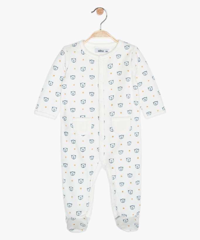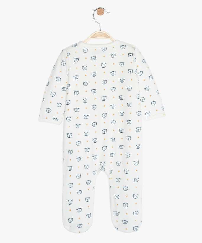 Absolument ravissant, le pyjama bébé en velours avec son imprimé à têtes d'oursons et étoiles ! Le pyjama est doté de fausses poches sur l'avant pour une allure chic ! Astucieux, il est équipé d'une ouverture pressionnée intégrale du col aux chevilles : habillage et changes faciles garantis !