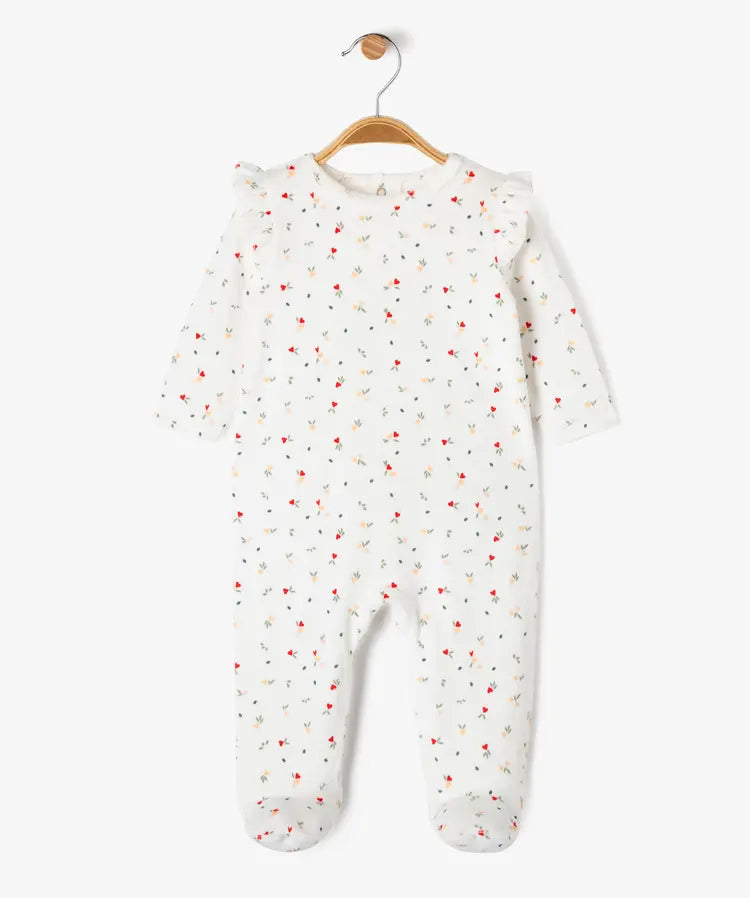 Ce pyjama bébé fille réunit tous les éléments pour faire craquer les petites princesses et leurs parents. Rehaussé de petits volants sur les épaules, il est décoré de petites fleurs en forme de cœurs. Un pyjama en velours, au style girly, parfait pour offrir des nuits douces et de jolis rêves aux petites filles. Sa fermeture pont-dos facilite l’habillage et le change.