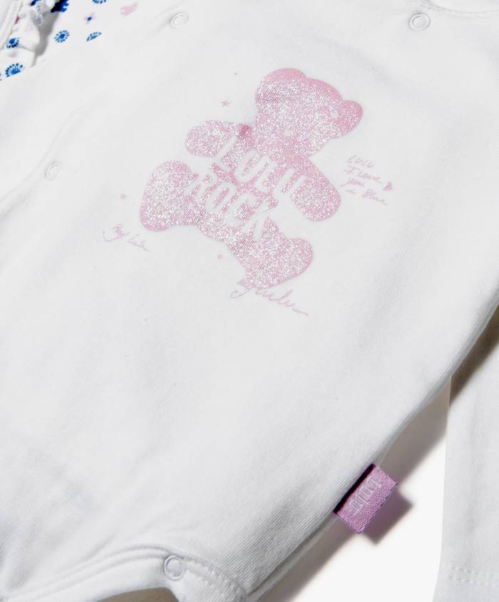 - Un body à manches longues, fermeture devant, avec ourson Lulu pailleté sur le buste