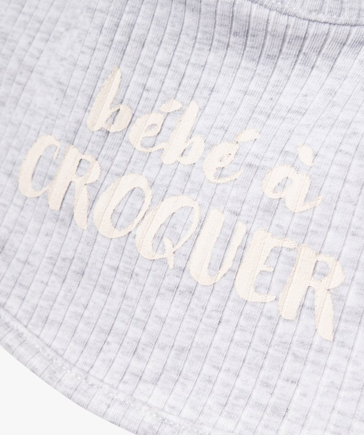 Kit naissance évolutif 3pièces:body ML,pantalon et bavoir,gris et écru