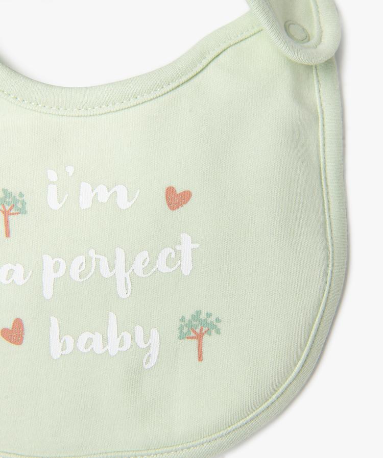 Kit naissance 3 pièces:bavoir, grenouillère,body ML,blanc et vert d'eau