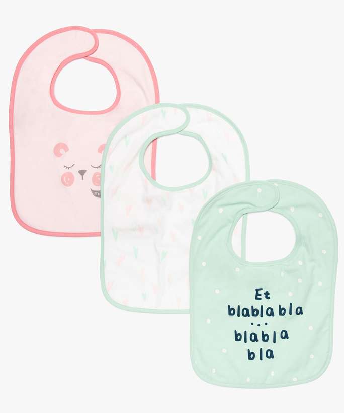 Lot de 3 bavoirs rose,blanc et vert d'eau