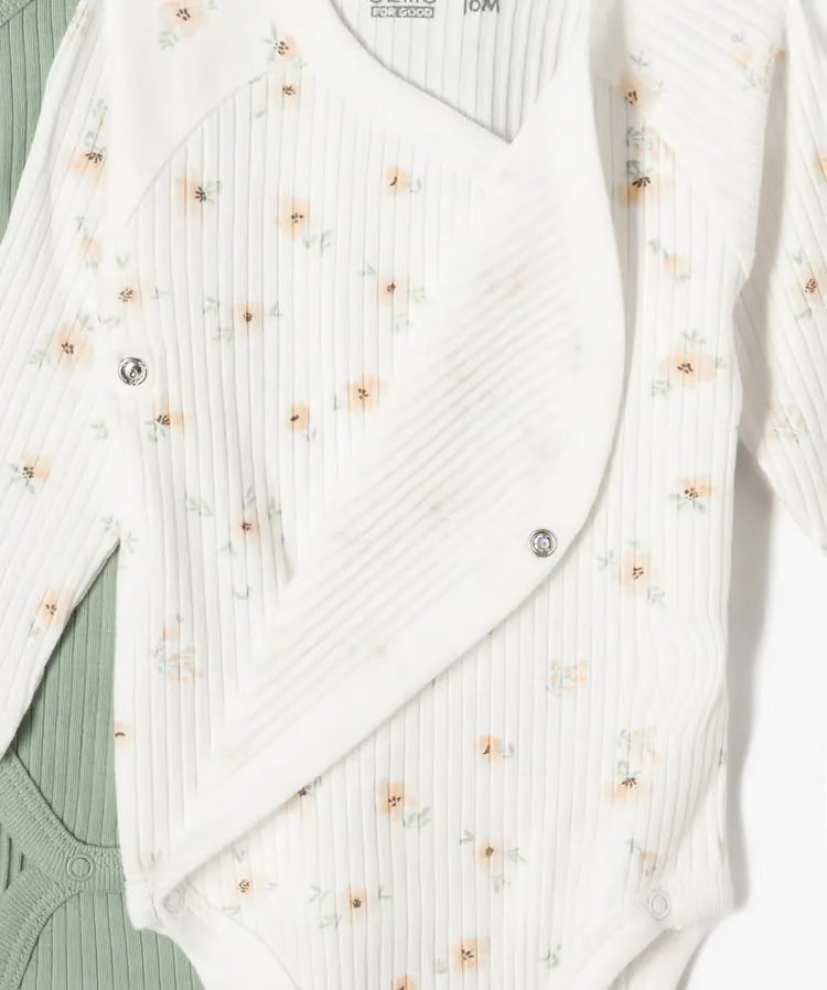 On aime la fraîcheur et la tendresse de ce lot de 3 bodies manches longues pour bébé. Conçus en jersey côtelé 100% coton, ces bodies offrent douceur et confort sous les vêtements de votre tout-petit. Chaque body possède une ouverture intégrale par boutons-pression à l'avant et à l'entrejambe pour faciliter l'habillage et le change. Le lot de bodies comprend 3 modèles différents : un body avec un motif lapin placé sur la poitrine, un body parsemé de fleurs et un body uni coloré. Idéal pour une touche de variété et de charme dans le vestiaire de votre bébé.