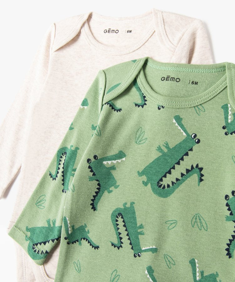 Le body bébé à manches longues possède un col américain qui s'élargit pour un habillage facile. Il est doté d'un entrejambe pressionné pour un change rapide et confortable, sans dévêtir bébé complètement. Il est vendu en lot de 3 bodies différents pour se faire plaisir côté style, tout en faisant des économies. Ainsi, le lot comprend : un body chiné uni, un body avec imprimé crocodile all over et un body avec un motif crocodile placé au niveau de la poitrine.