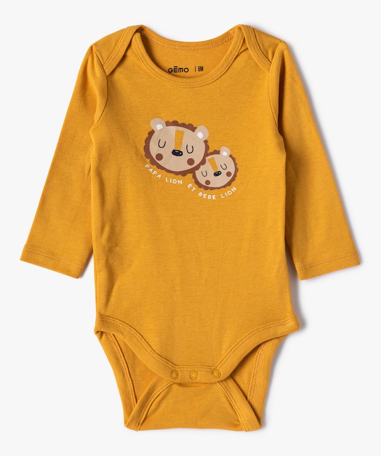 Lot de 3 bodys ML , noir, jaune et blanc à motif lion