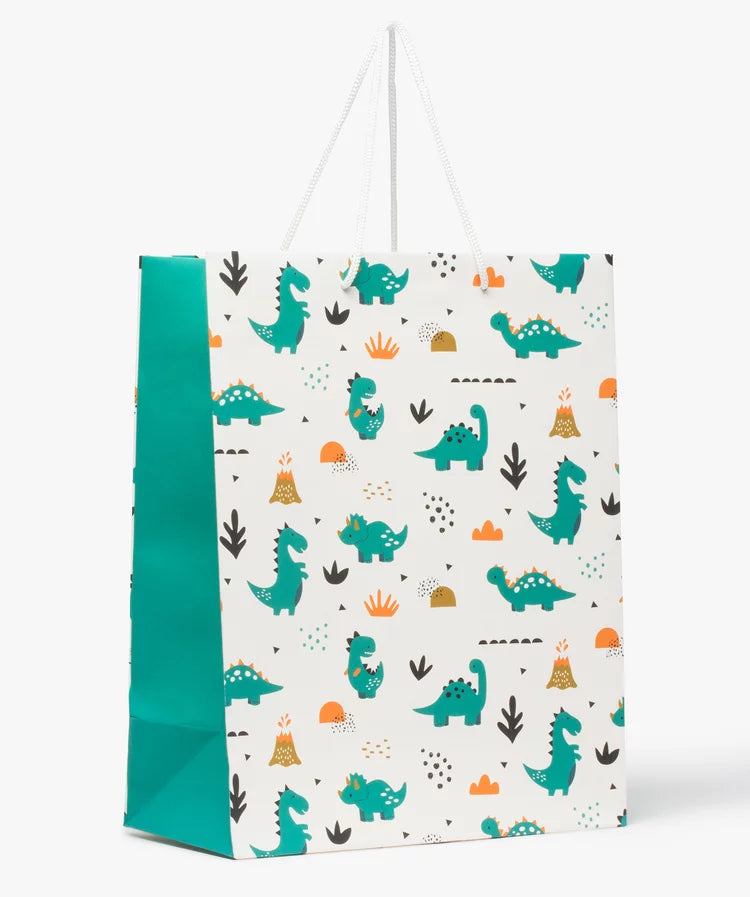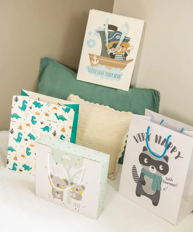 Pochette cadeau bébé avec motifs dinosaures en papier recyclé