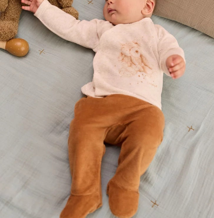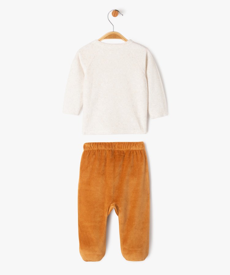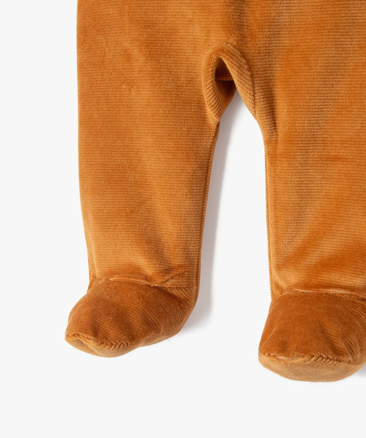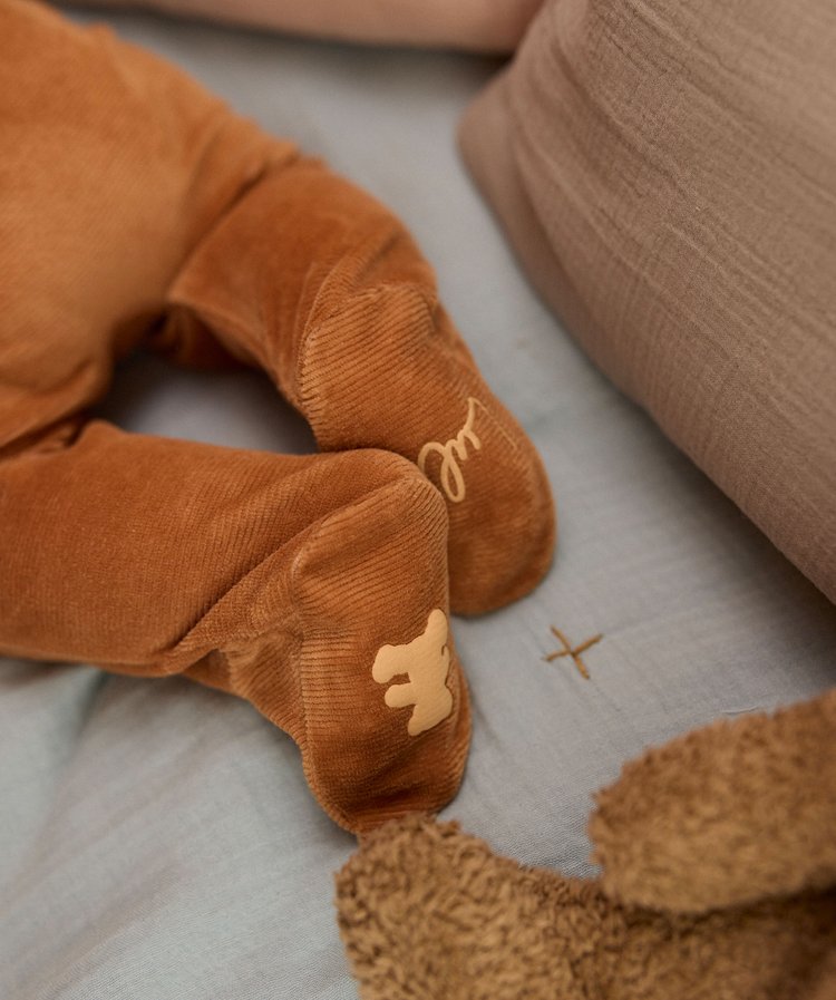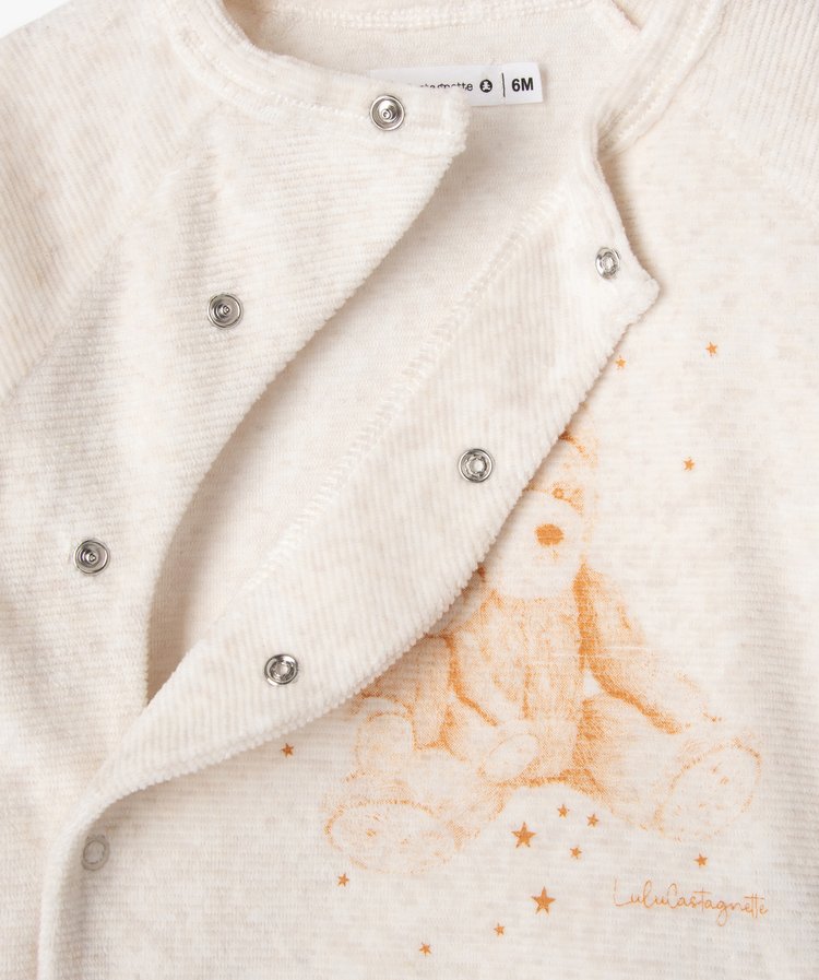 Votre petit garçon sera craquant dans ce magnifique pyjama LuluCastagnette. Un pyjama en velours à fines côtes composé d’un haut à manches longues ouvert sur l’avant et d’un pantalon avec pieds doté d’une ceinture élastique. Ce pyjama 2 pièces séduit par son sublime motif vintage représentant des ours en peluche, signature de la marque et ses petits patins antidérapants sous les pieds, en forme d’ourson sous un pied et d’inscription « Lulu » sous l’autre. Un pyjama bébé garçon à la fois pratique et douillet qui accompagnera bébé au pays des rêves.