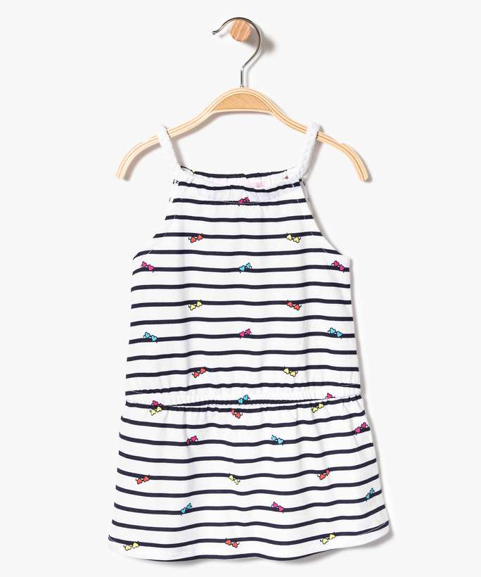Robe en maille avec motifs ou rayures pour bébé fille. Ceinture élastiquée.