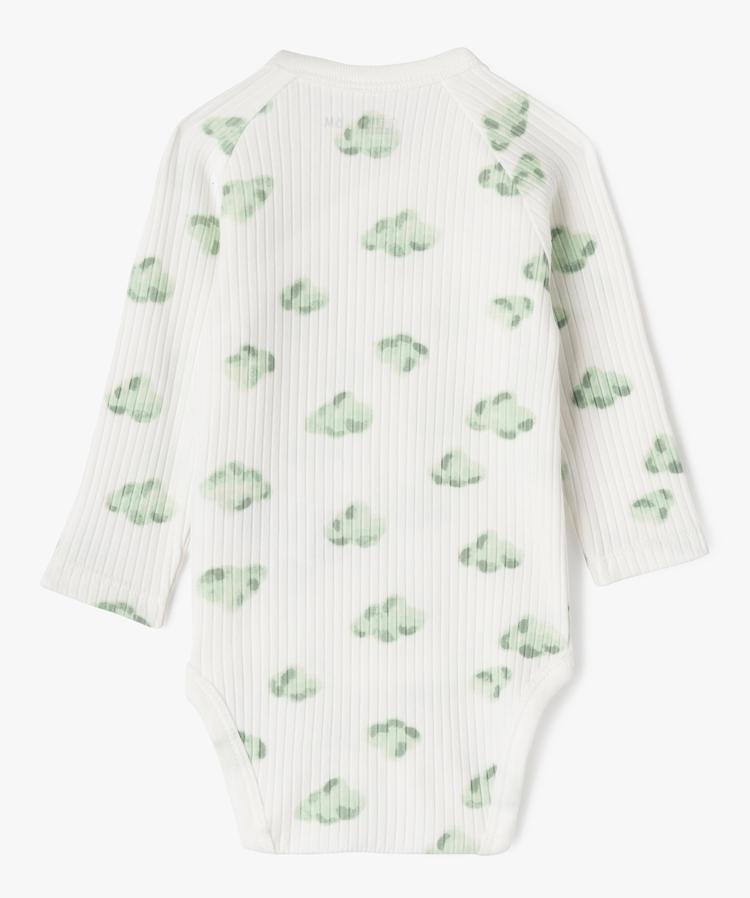 Mettez de la tendresse et de la douceur dans le dressing de bébé avec ce lot de 3 bodies manches longues. Réalisés en maille côtelée 100%, ces bodies bébé offrent un confort exceptionnel et une grande douceur. L'ouverture intégrale par boutons-pression à l'avant et à l'entrejambe simplifie l'habillage et le change. Le lot se compose de 3 modèles différents : un body avec un motif lapin placé sur la poitrine, un body parsemé de nuages, et un body uni coloré pour une touche de charme à varier au quotidien.
