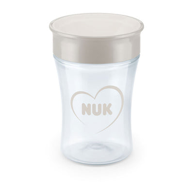 NUK Magic Cup permet aux enfants de boire comme les grands grâce au bord à 360° qui encourage et entraîne à boire tout autour – sans poignées et presque comme dans une tasse normale. Seule différence « magique » : la tasse est étanche. Un disque en silicone assure l’étanchéité du bord intérieur. Boire est un jeu d'enfant : il suffit de sucer le rebord de la tasse. Et pour garder NUK Magic Cup propre et sûre lors des déplacements, un couvercle supplémentaire la protège.Elle a une contenance de 230ml.